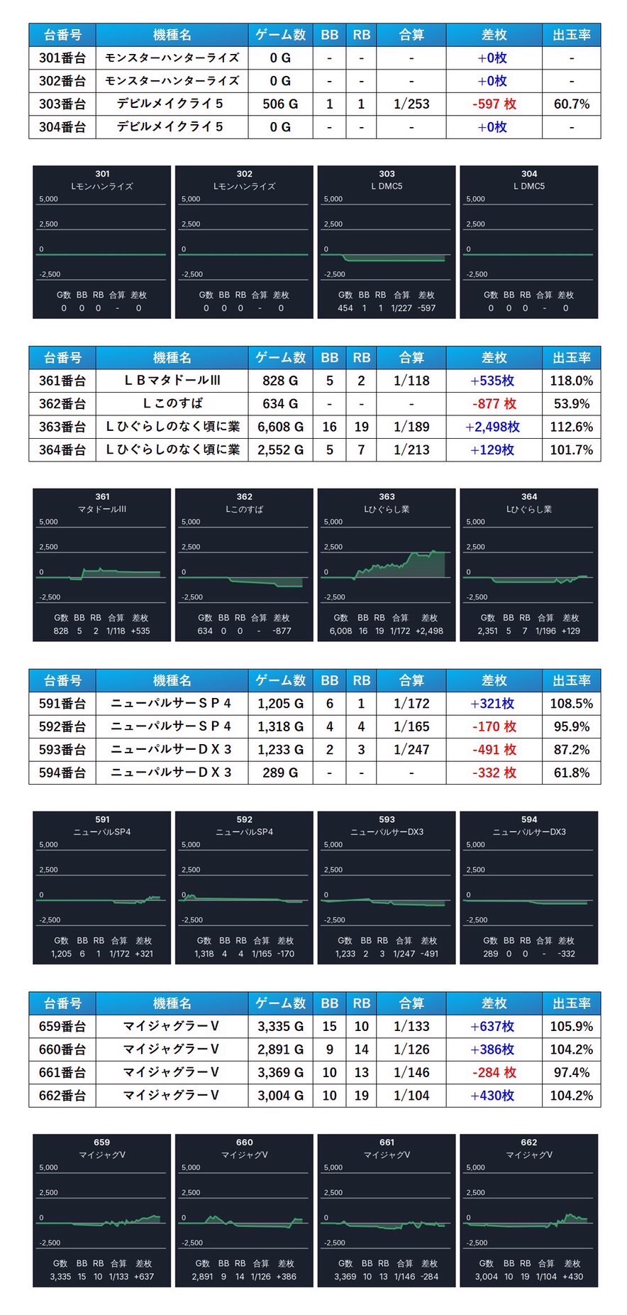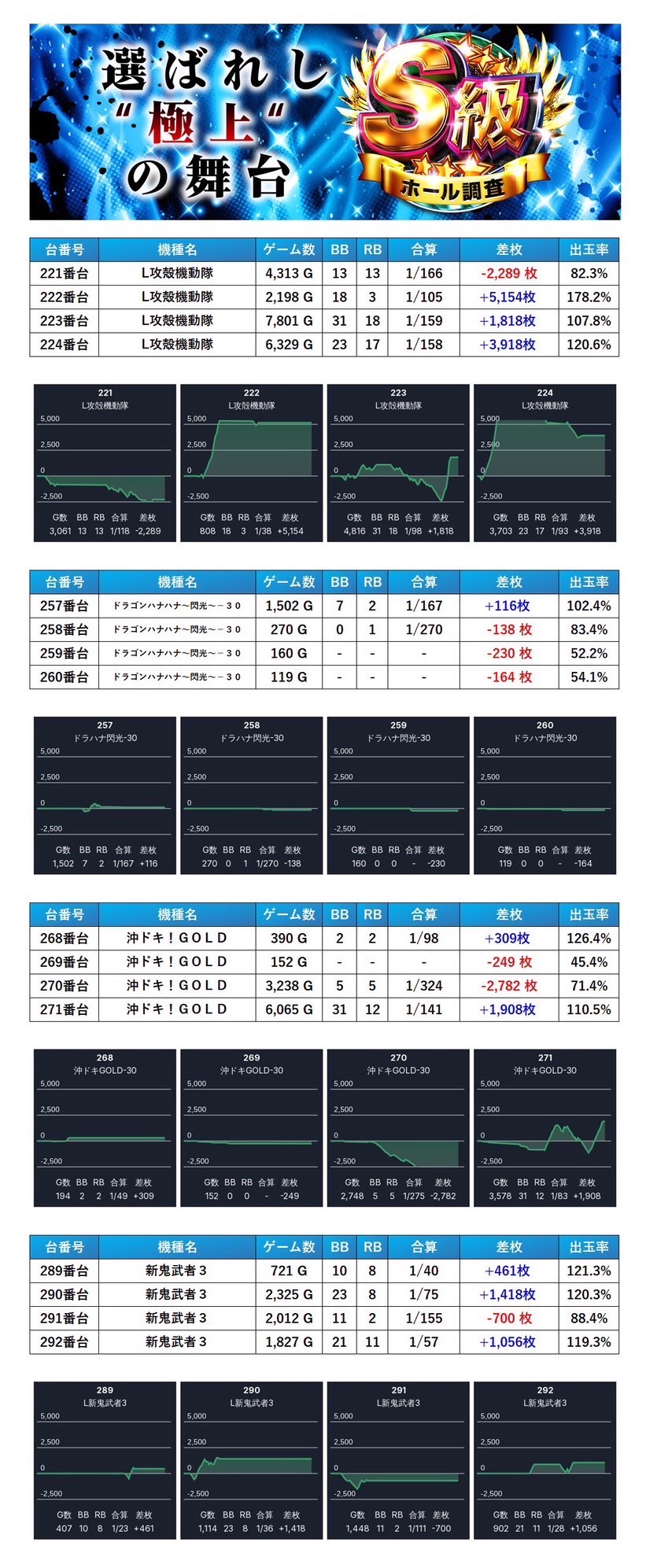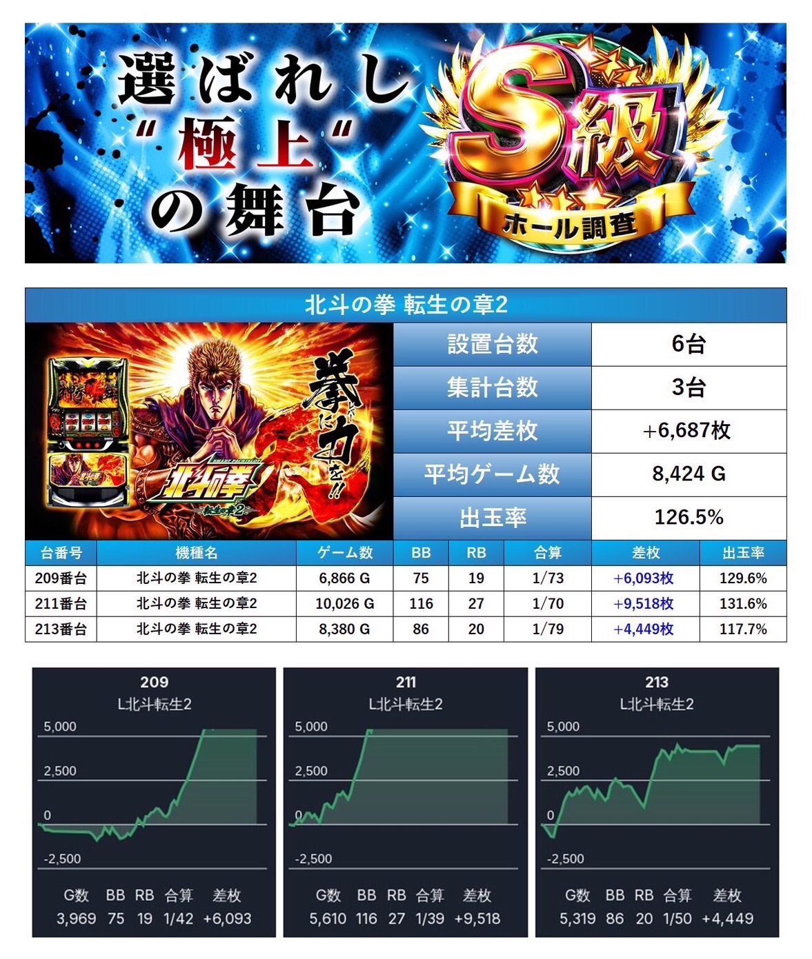 平均差枚+6,687枚、出率126.5%と突出した数値を記録しており、今回の中でもトップクラスのインパクトを放っていた。