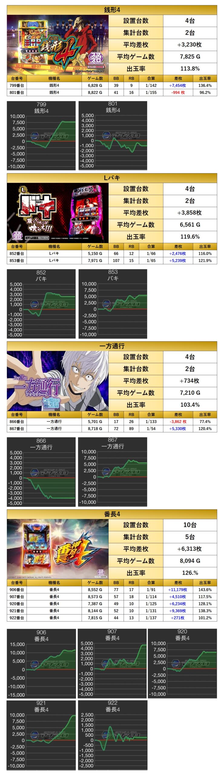 ・1台あたりの平均差枚数+3,742枚(平均出率115.4%)