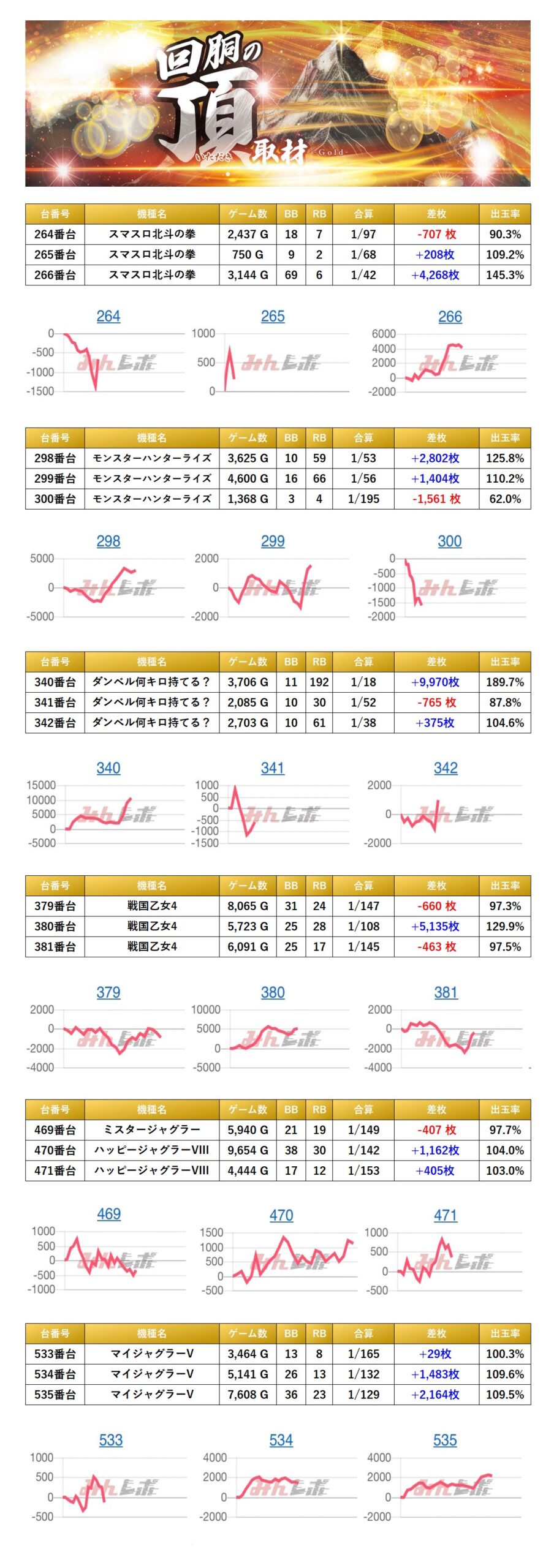 ・集計機種計21台総差枚数:+26,525枚