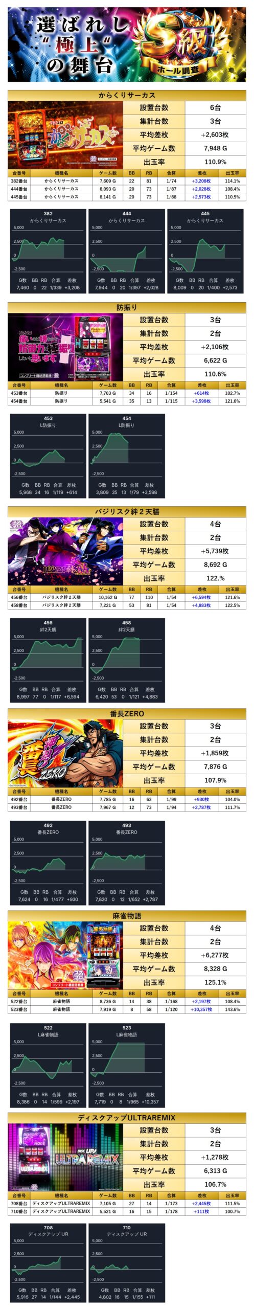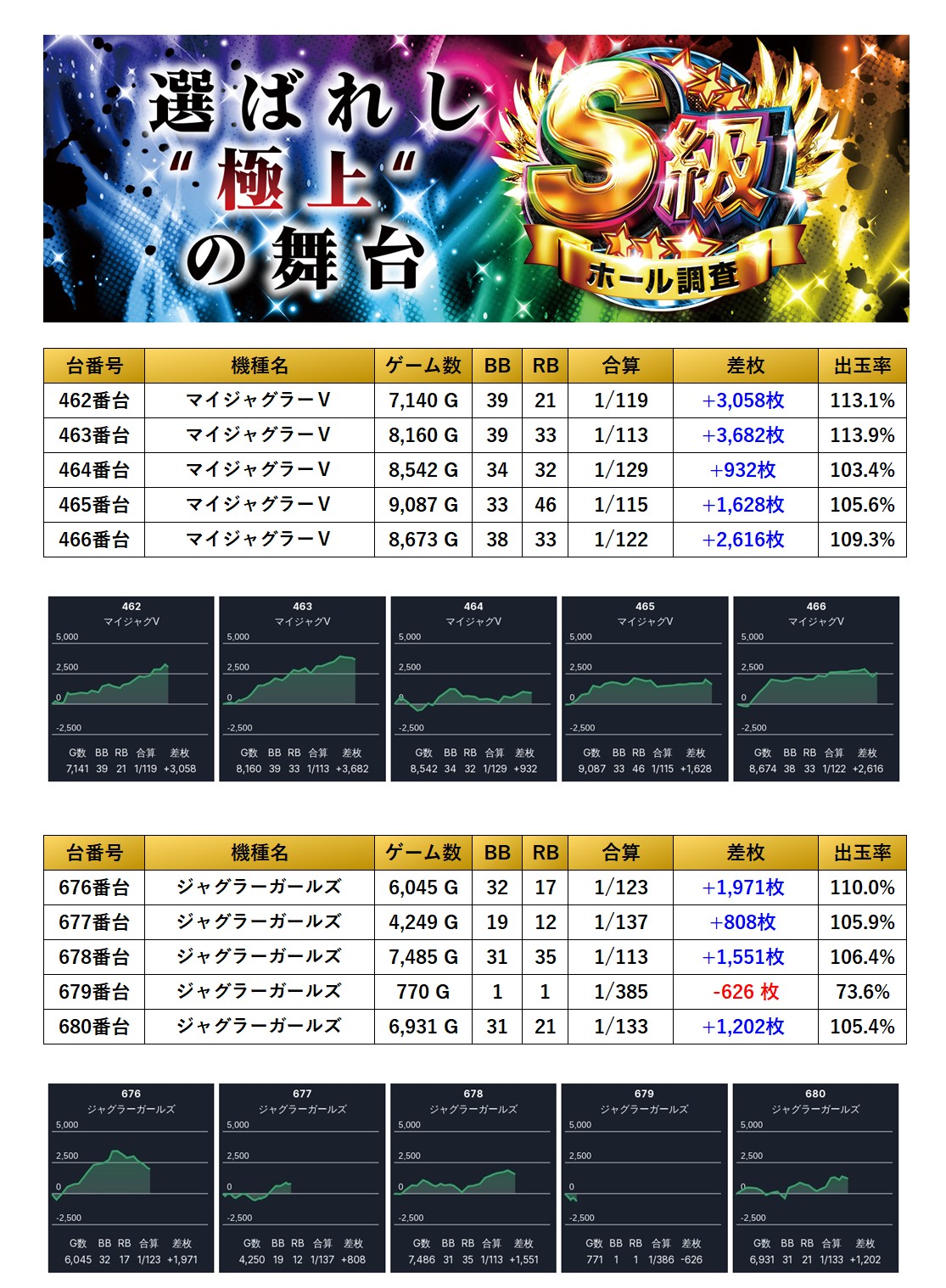 9回目となったS級調査-虹-は周年月間の中で開催されたが、店内のスロットの1/4が対象としてpick upされており、これだけでもこの日の力強さが感じられることだろう。