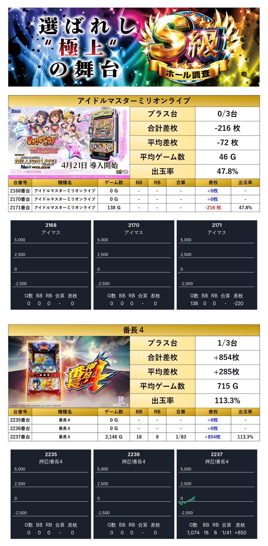 S級ホール調査-虹- 1ヶ月ぶりの開催!総差枚+3.9万枚&二ツ星評価!