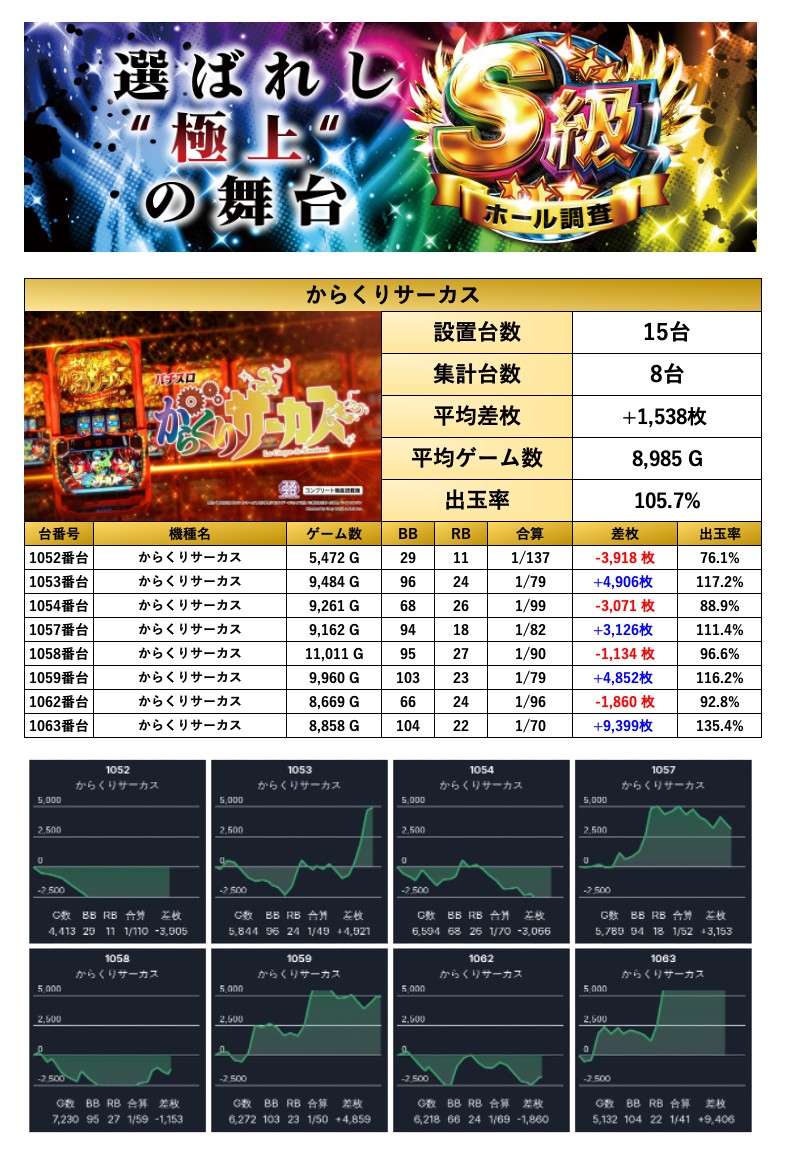 平均差枚は+1,538枚で平均出率が105.7%だった。