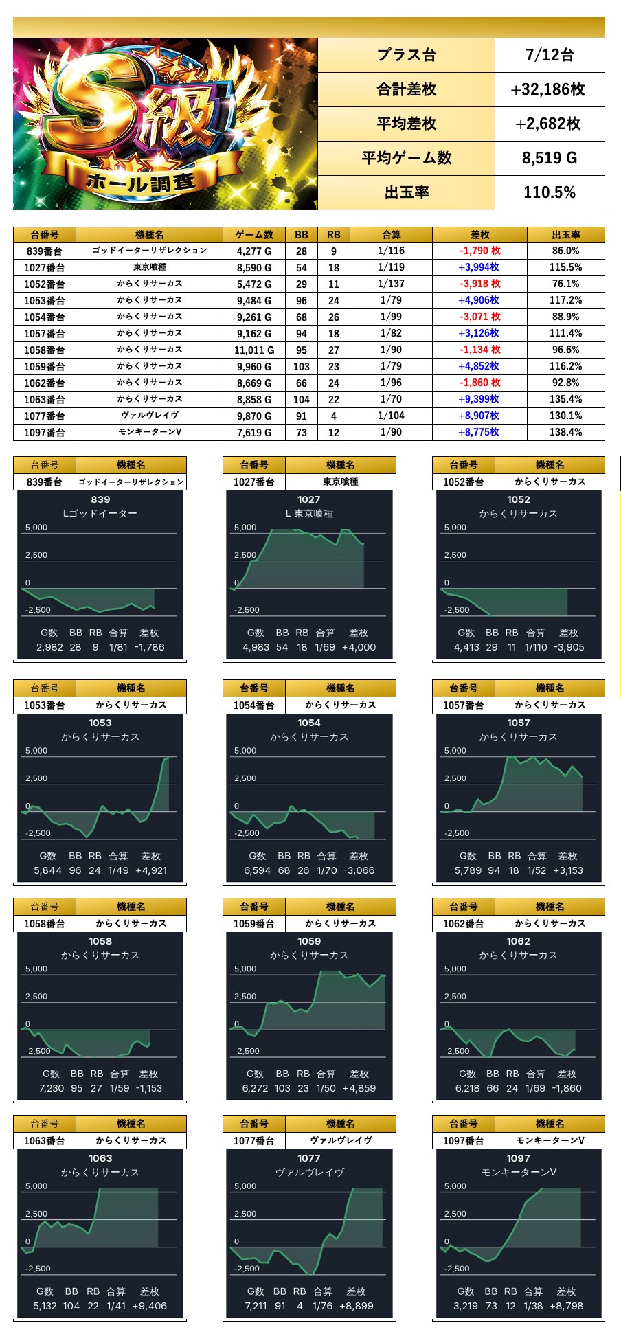 ・1台あたりの平均差枚数+2,511枚(平均出率110.3%)