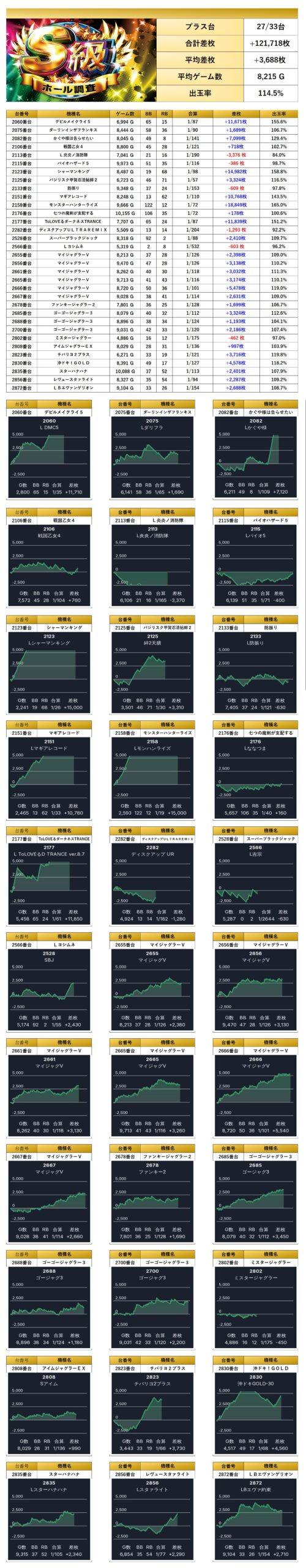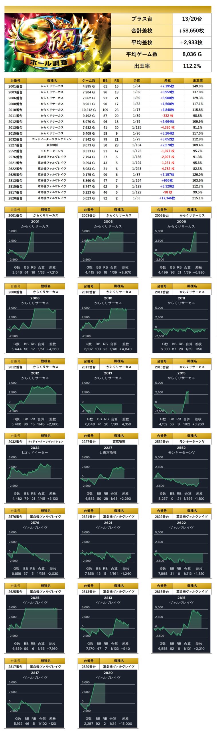 平均差枚+3,062枚、平均出率112.9%と素晴らしい結果になった。