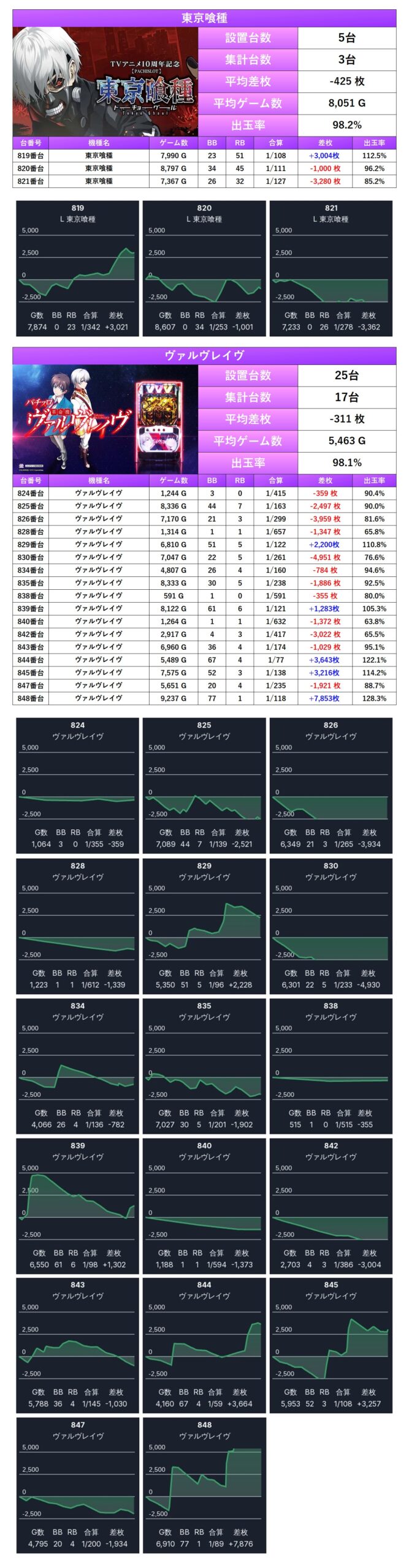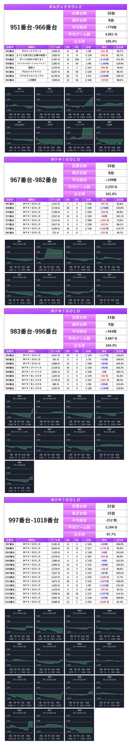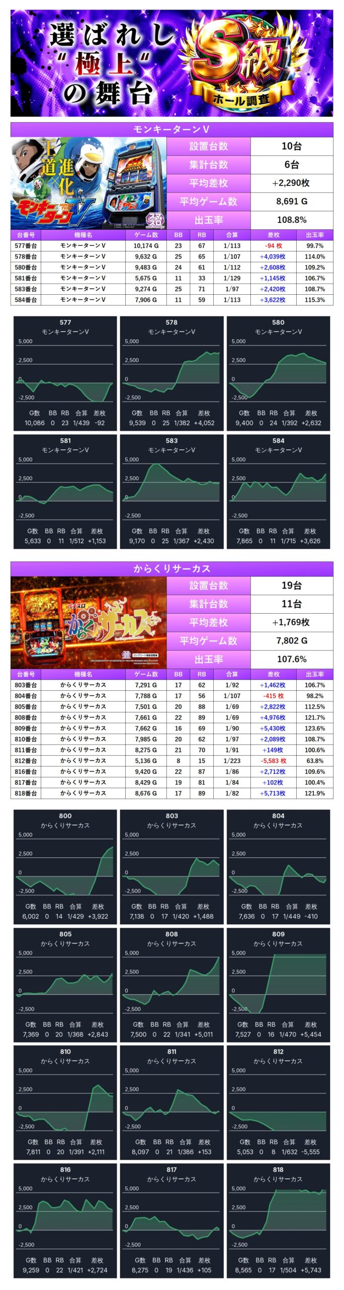 平均差枚+720枚、平均出率103.5%となった。メイン機で紹介した5機種のうち4機種がpick upとなっている。