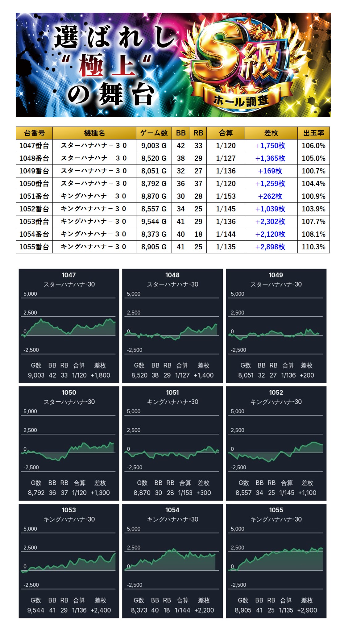 「スターハナハナ」「キングハナハナ」合わせて11台並びをpick upする。