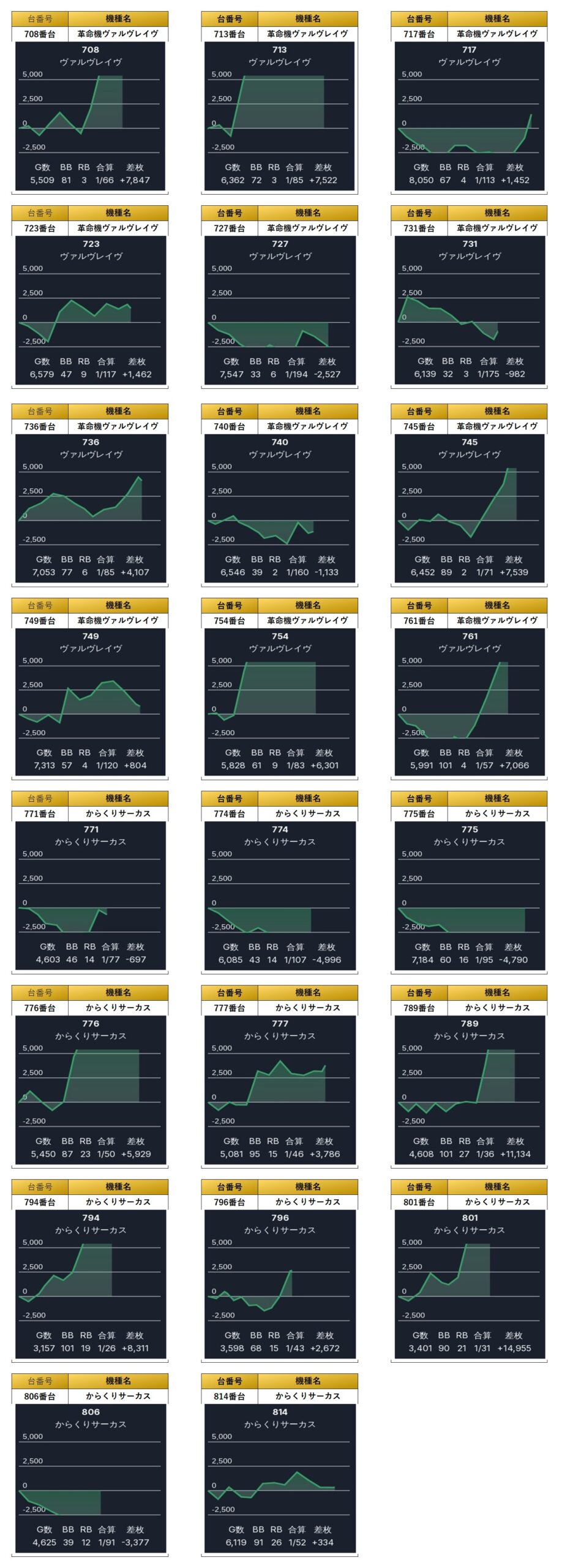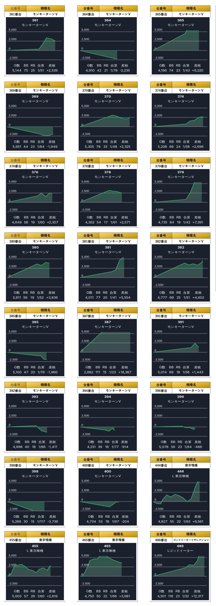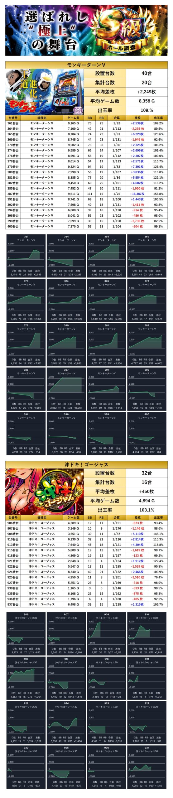平均差枚+857枚、平均出率103.9%となった。こちらも平均ゲーム数が高く差枚は出ていないが追える環境であったのだろう。