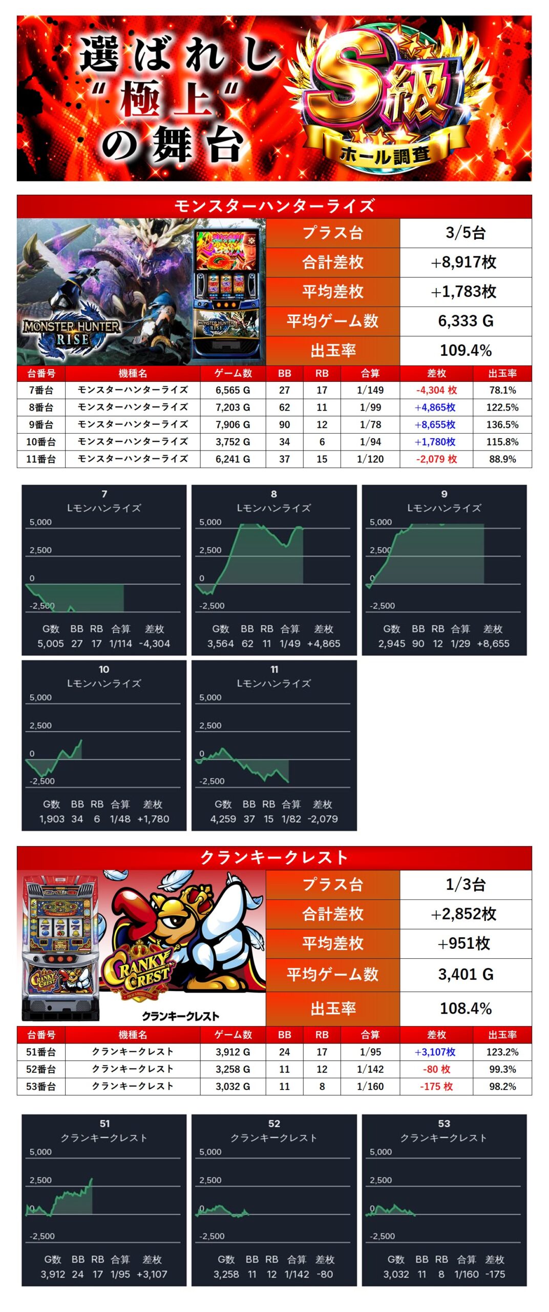 平均差枚+1,471枚、平均出率109.1%と安定感を見せ、まとまりある仕上がりだった。