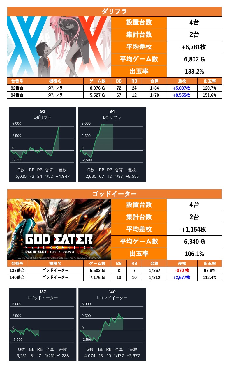 同店の傾向はかなり把握できてきているのは間違いないので次回以降かなり狙いやすくなるだろう。
