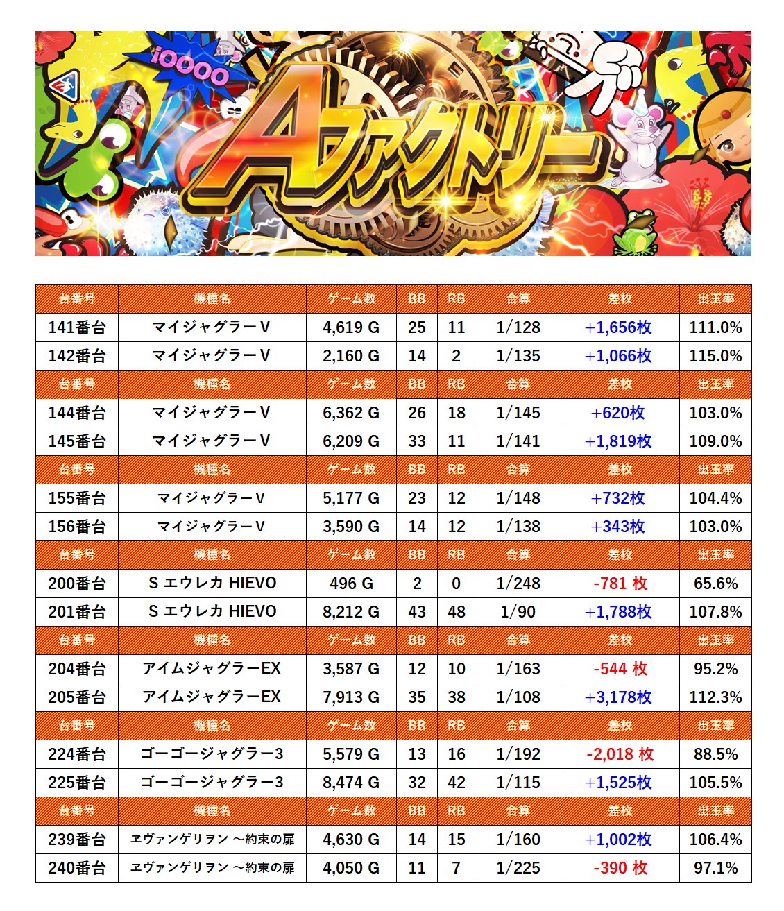 ・集計機種計16台総差枚数:+15,383