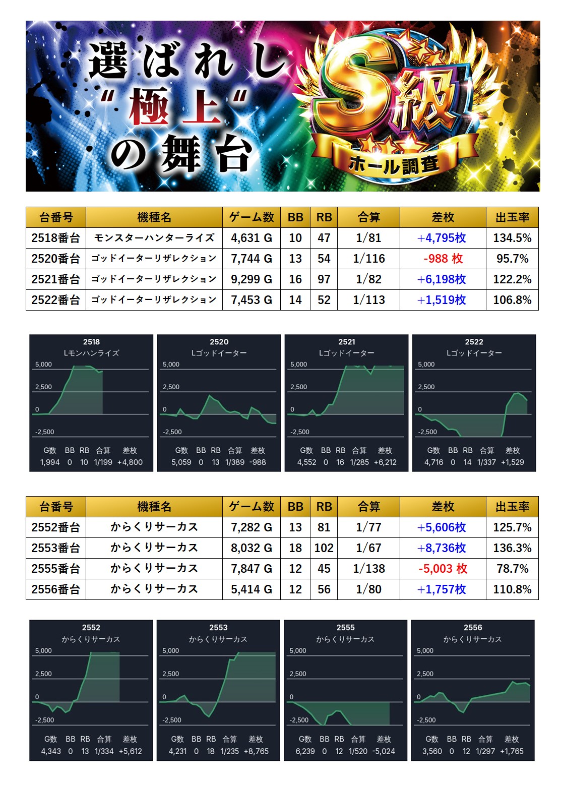 2回目の開催のS級ホール調査-虹-は安定した仕掛け量と出率で二ツ星を獲得