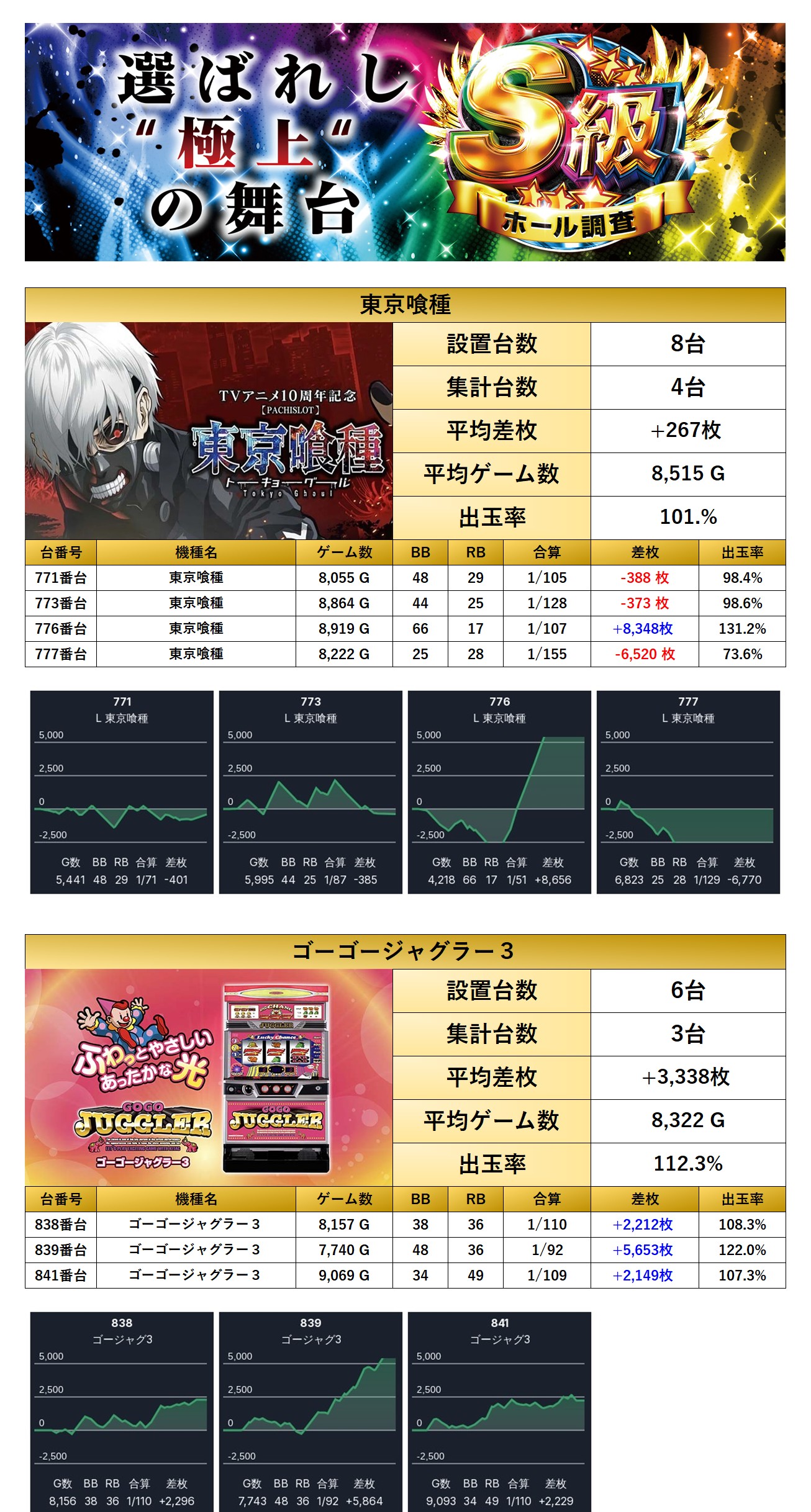 優秀台でも紹介した「東京喰種」「ゴージャグ3」2機種7台をpick upする。
