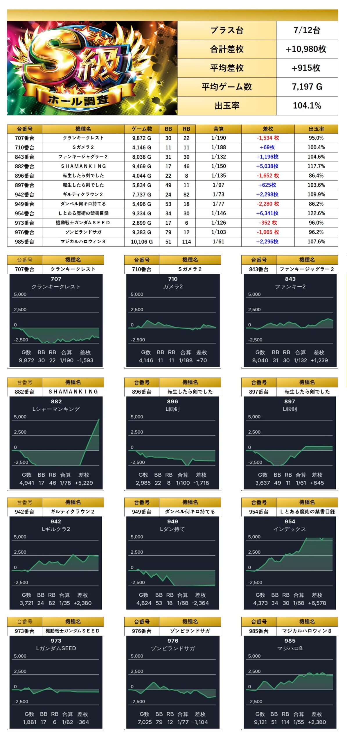 平均差枚は+915枚で平均出率が104.1%だった