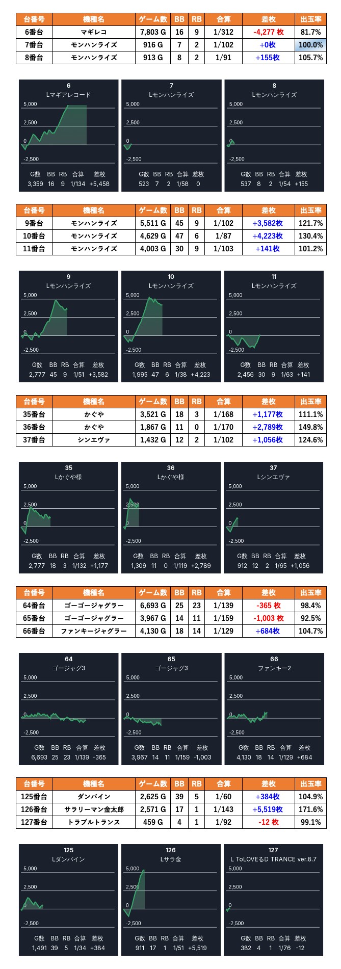 ・集計機種計21台総差枚数:+39,657枚
