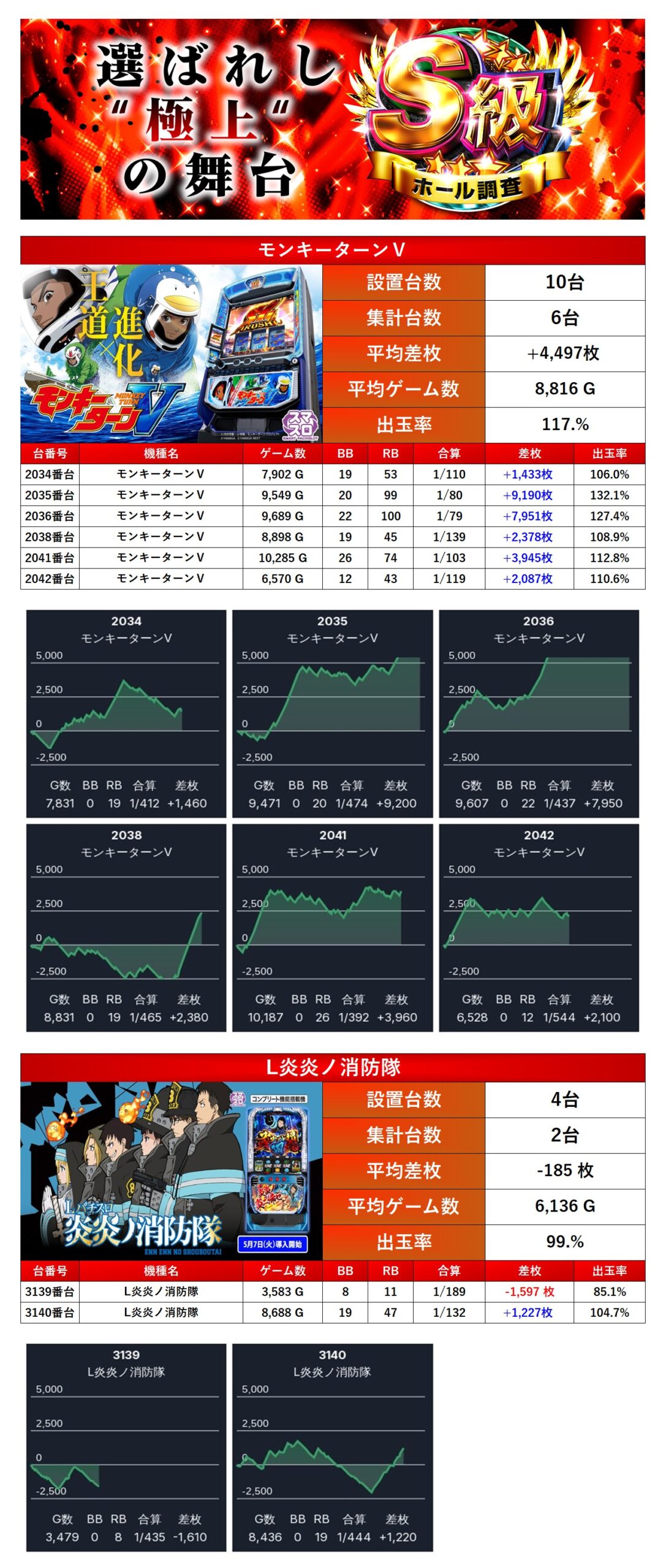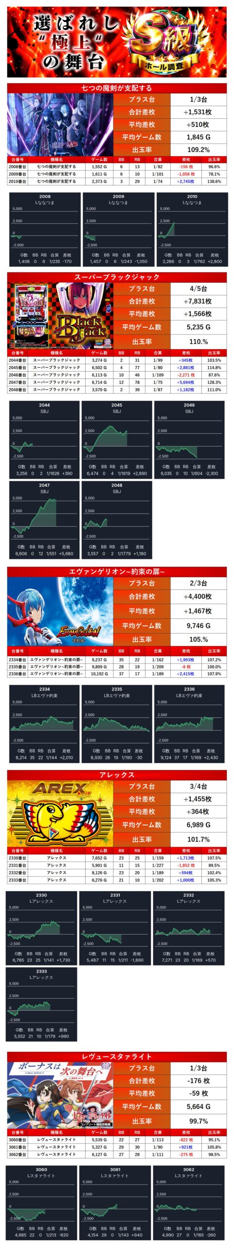 2回目のS級ホール調査-赤-は全台系が5機種もある派手な仕掛けで二ツ星獲得!