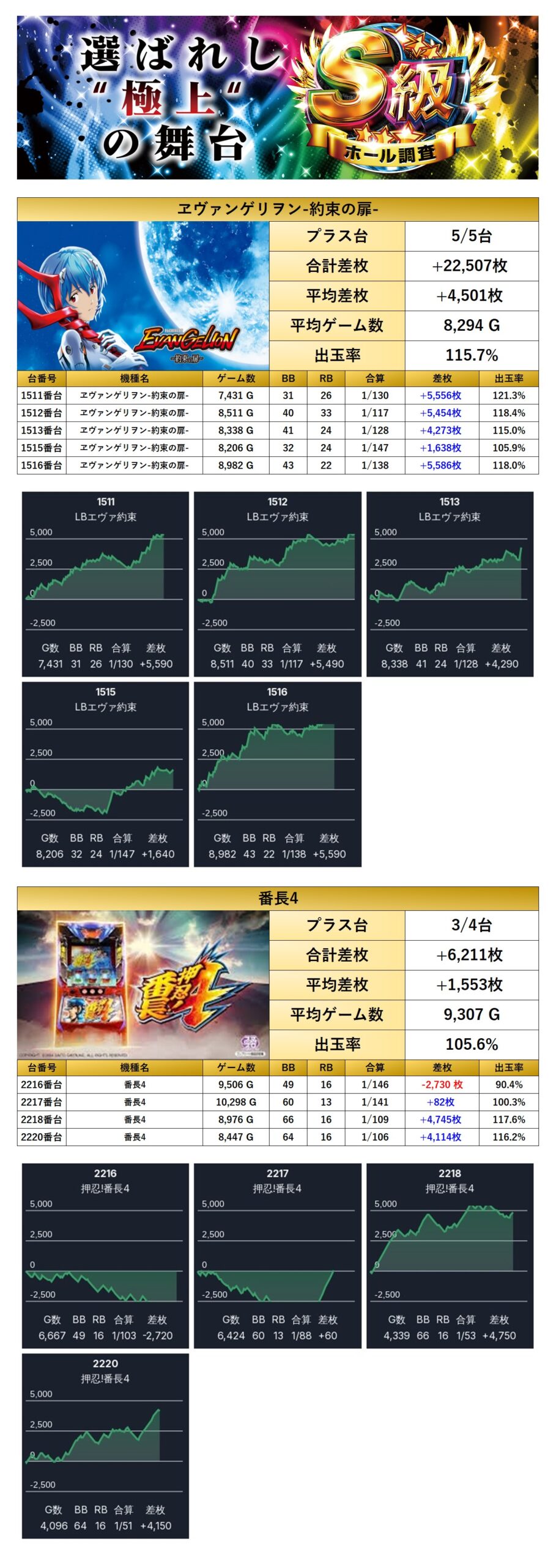 「ヱヴァンゲリヲン-約束の扉-」「番長4」の2機種を9台pick up。