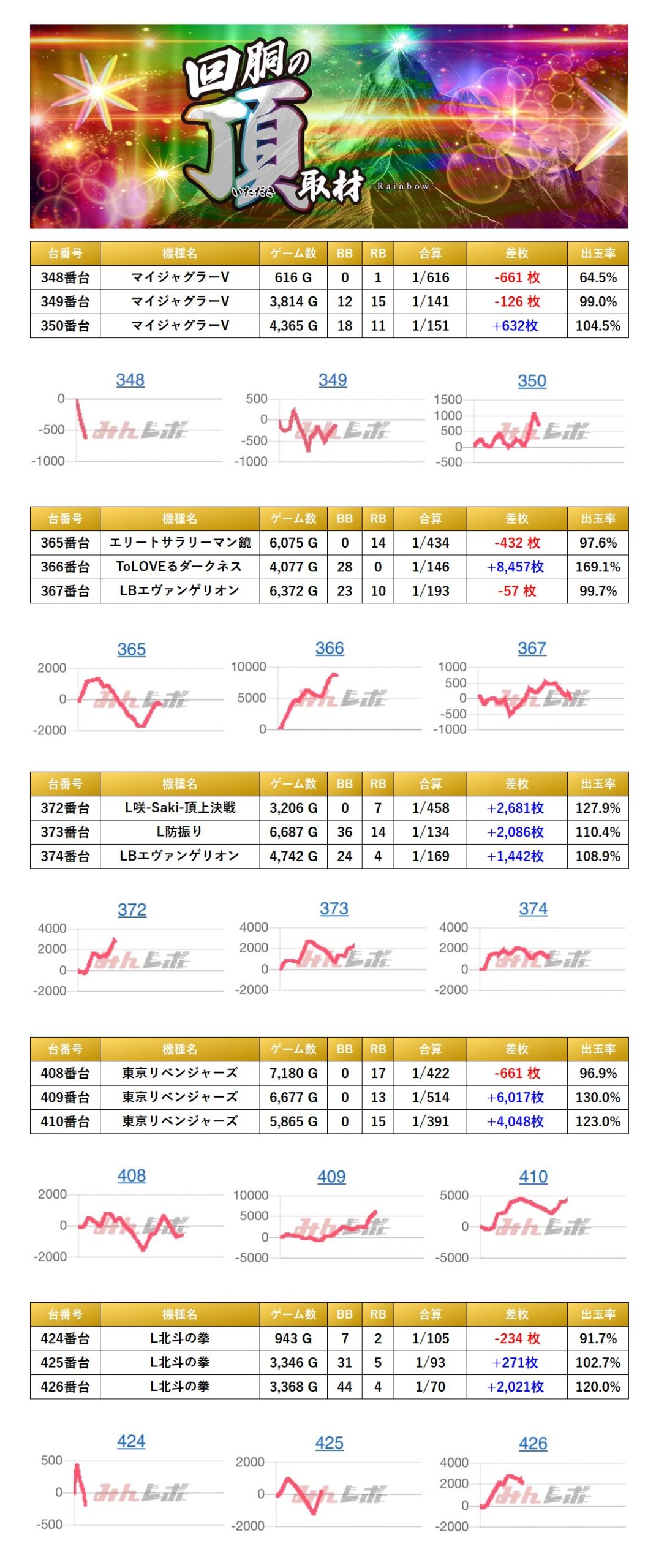 ・集計機種計15台総差枚数:+25,484枚