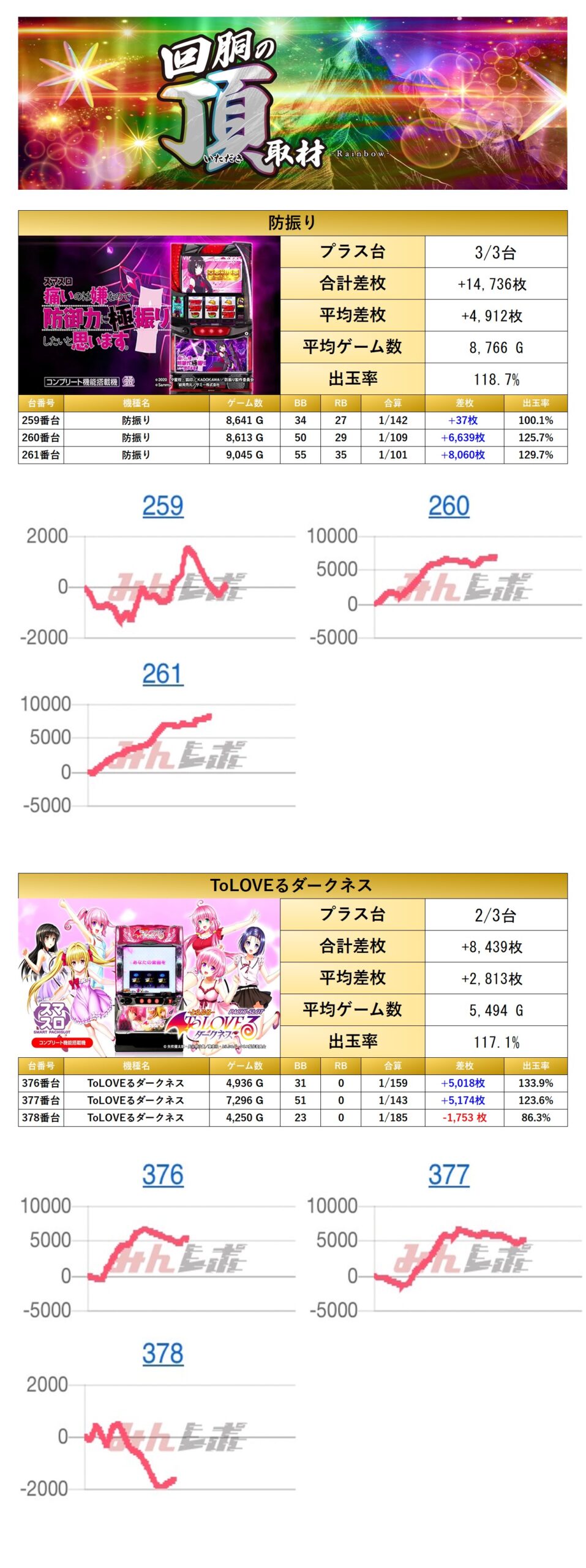 2機種6台の平均差枚は+3,863枚で平均出率が118.1%だった。