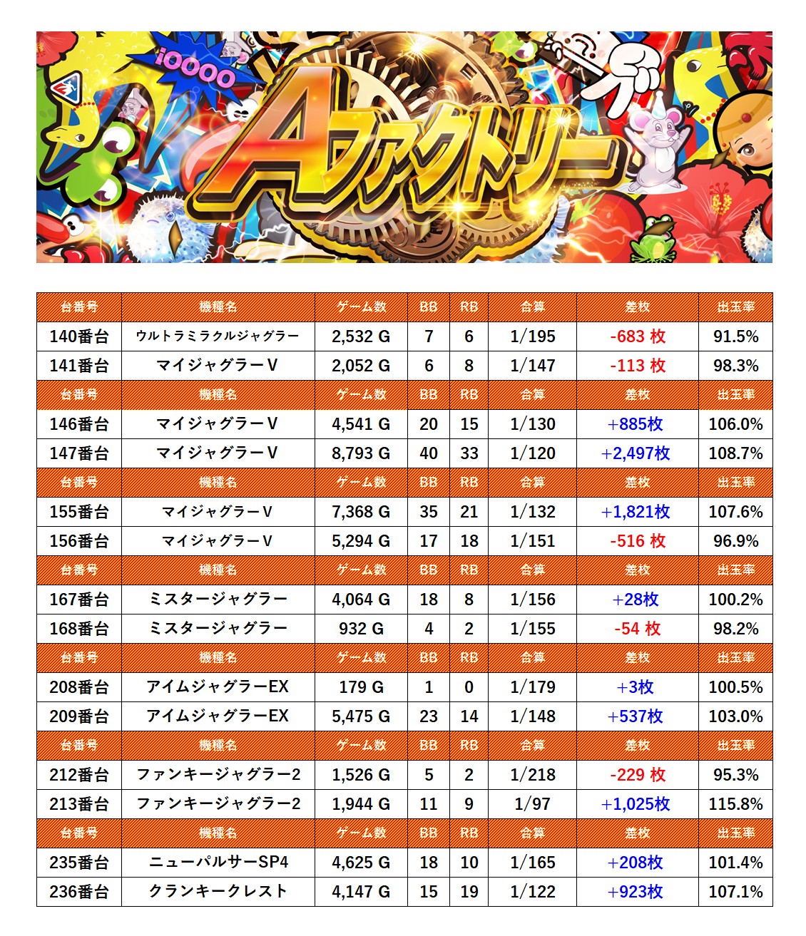 ・1台あたりの平均差枚数+452枚