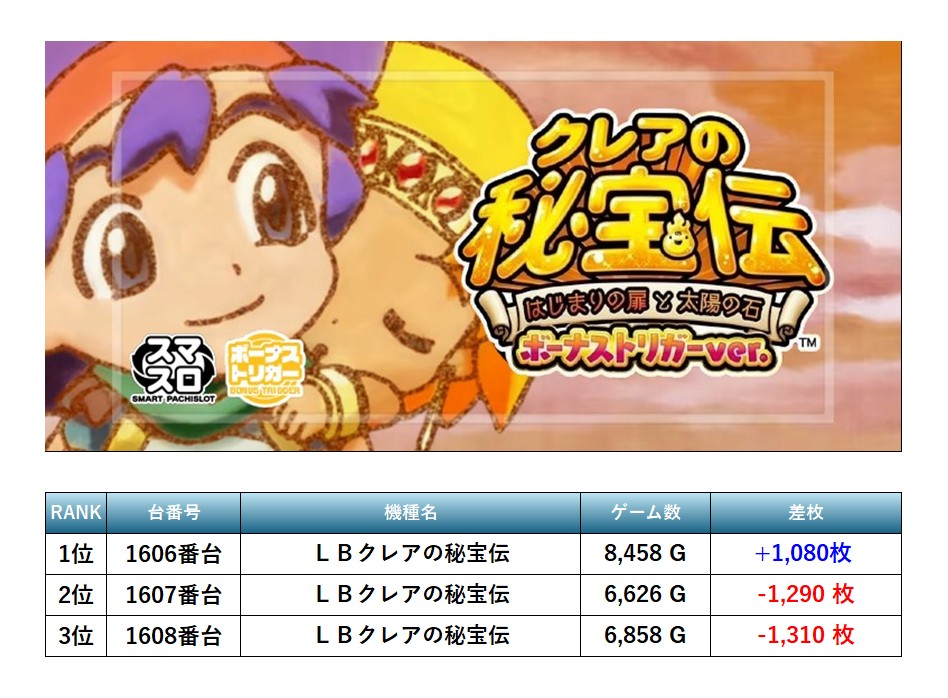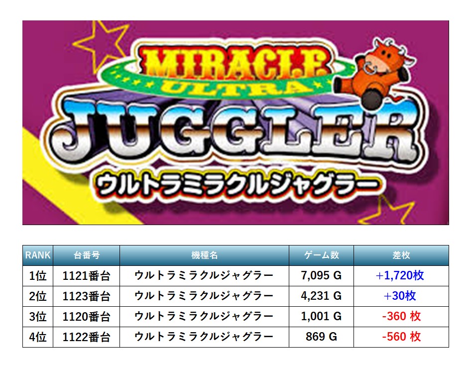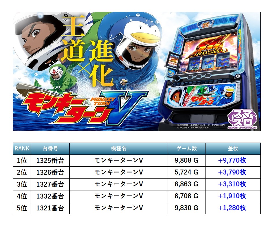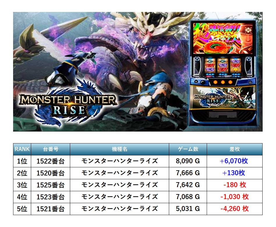 21回目となったSMART SLOTTER来店取材では9機種もの多彩な仕掛けが用意された。pick up機種は「モンキーターン」「かぐや様は告らせたい」「モンハンライズ」「エヴァンゲリオン約束の扉」「ジャグラーガールズ」「ウルミラジャグラー」「スーパーブラック」「クレアの秘宝伝」「マジハロ」としっかりpick up機種はほぼ全台しっかり打ち込まれていた。過去の傾向通り安定した仕掛け量と質で出玉もよかった。