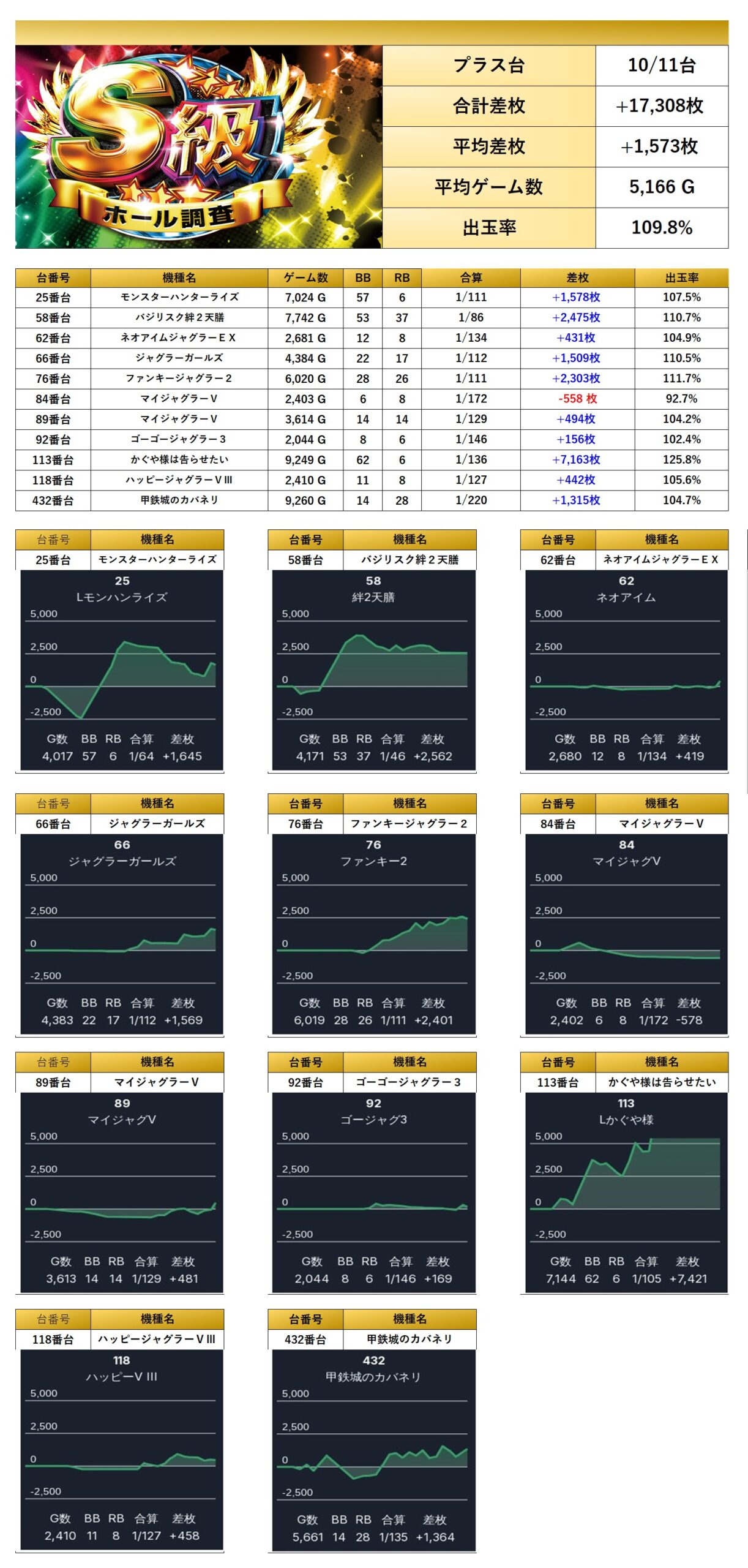 ・1台あたりの平均差枚数+1,541枚(平均出率109.9%)