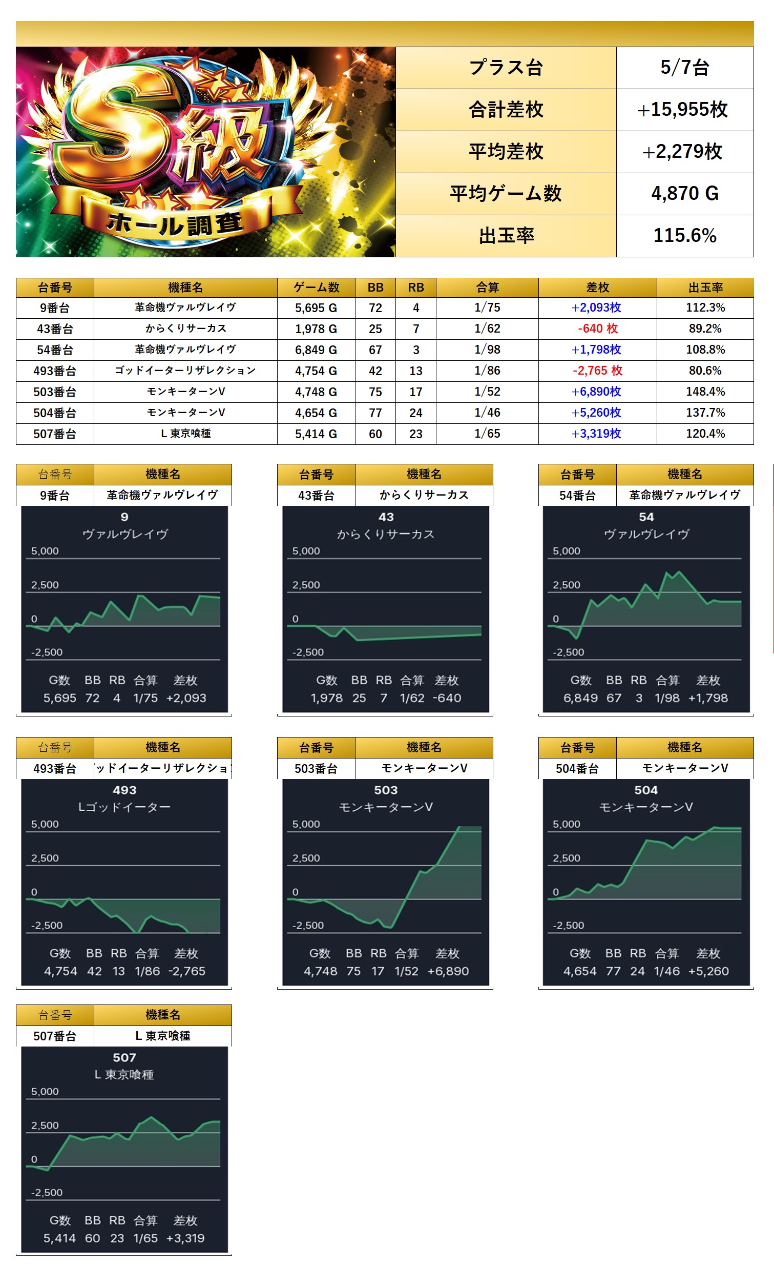 平均差枚+2,279枚/出率115.6%と素晴らしい結果を残した。