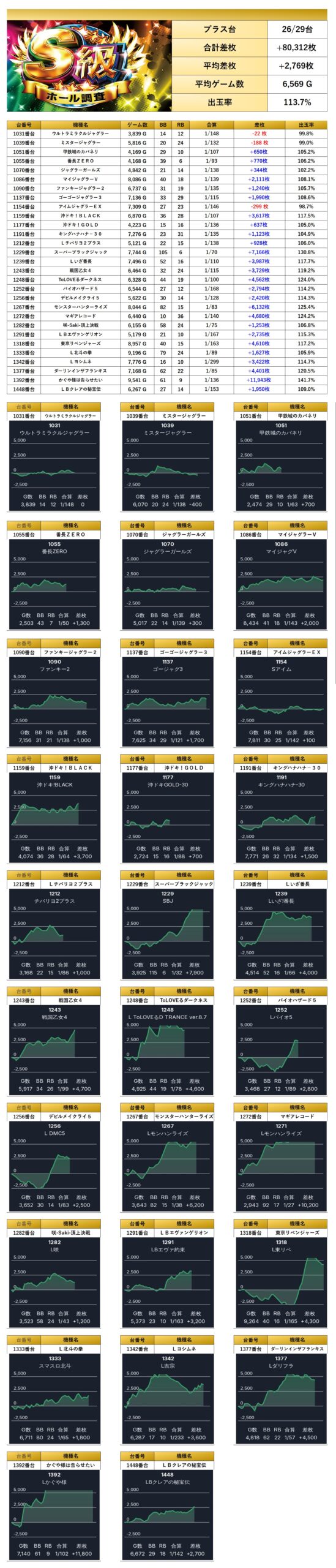 4台以上設置機種から優秀台を探すと29台をpick upする事ができた。