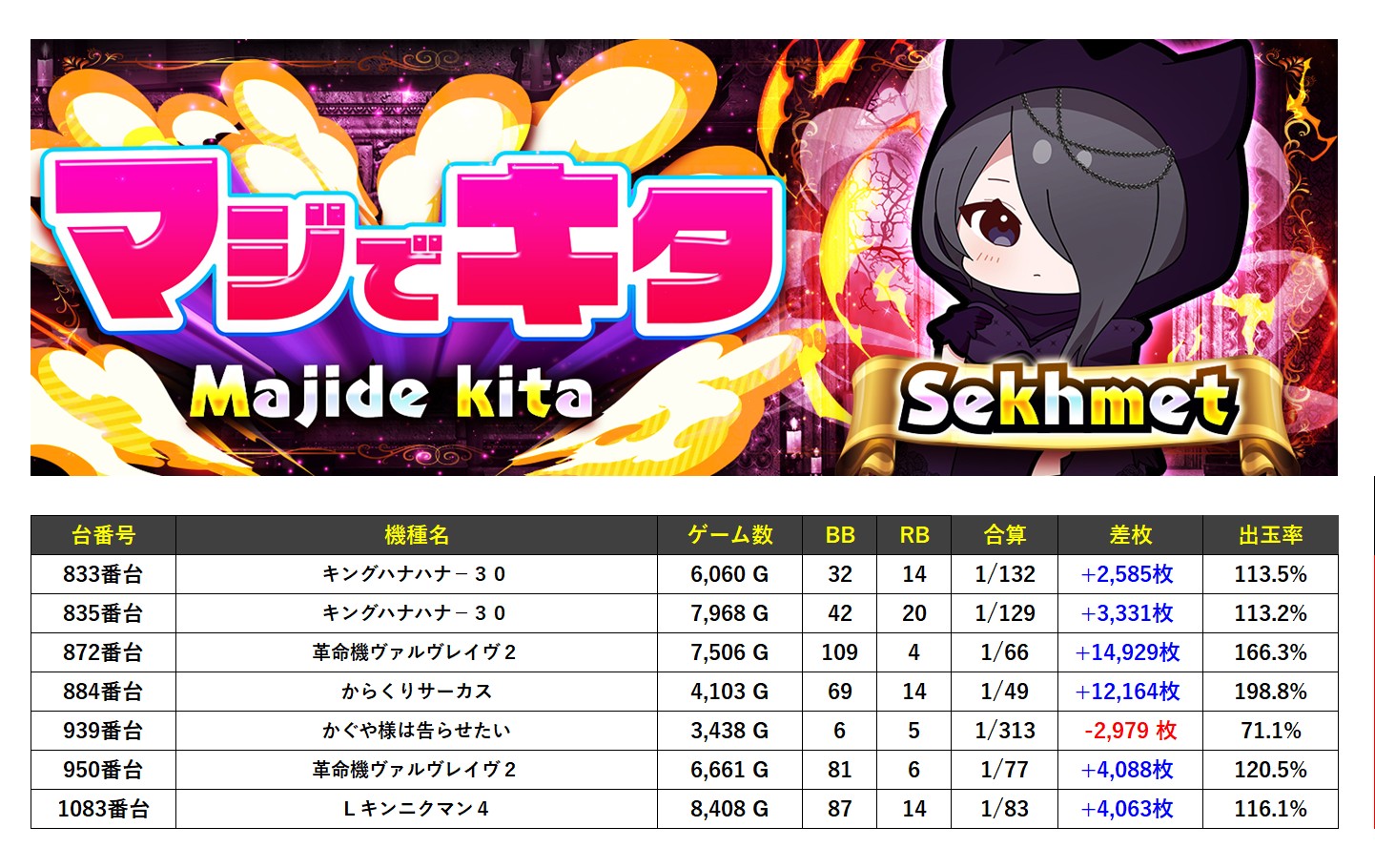 ・1台あたりの平均差枚数+2,699枚(平均出率114.7%)