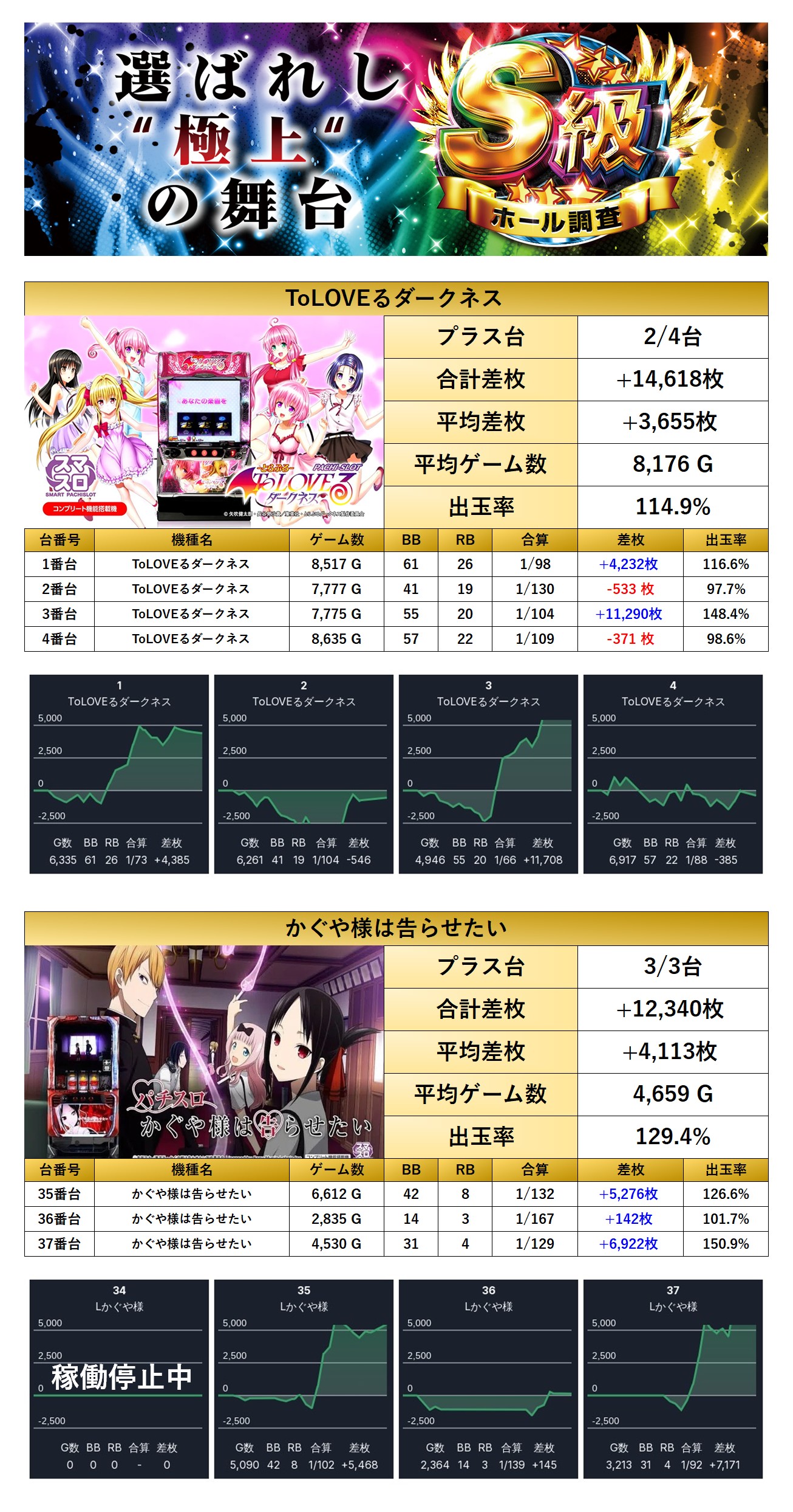 全台系からは「ToLOVEるダークネス」「かぐや様は告らせたい」の2機種7台をピックアップ。